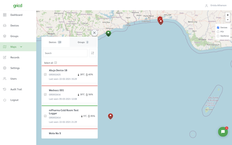 Gricd is an Internet of Things (IoT) enterprise that has developed a cold chain solution for the storage and transportation of vaccines, blood and agricultural products. The web application interacts with the motes and Frij boxes, which monitor temperature, humidity and live location.
